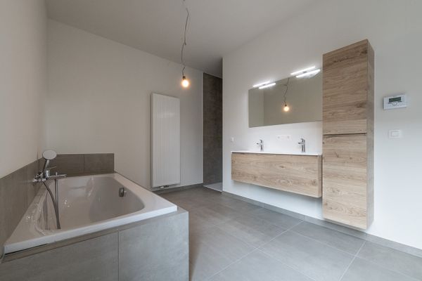 Badkamer | Verdieping 1 | 13,54 m² | dubbele lavabo, bad en inloopdouche |